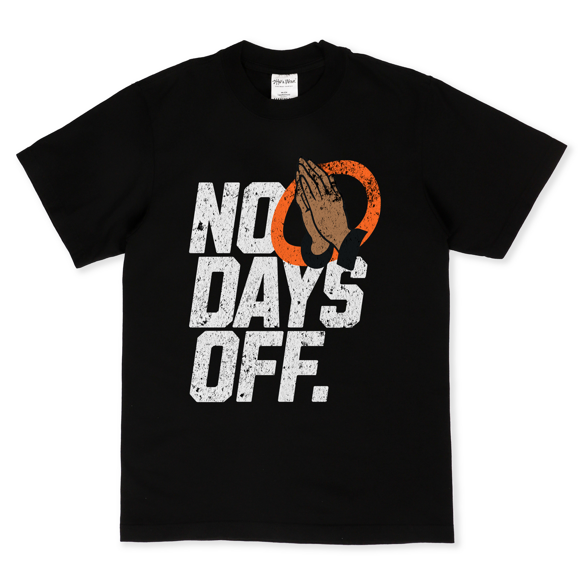 Faith isn’t part-time — it’s every day. This bold black tee features distressed white “No Days Off” lettering with praying hands in place of the “O,” reminding you to stay committed to prayer and purpose without breaks. Made from soft, durable cotton for all-day comfort, it’s perfect for anyone living a life of consistency, discipline, and devotion.